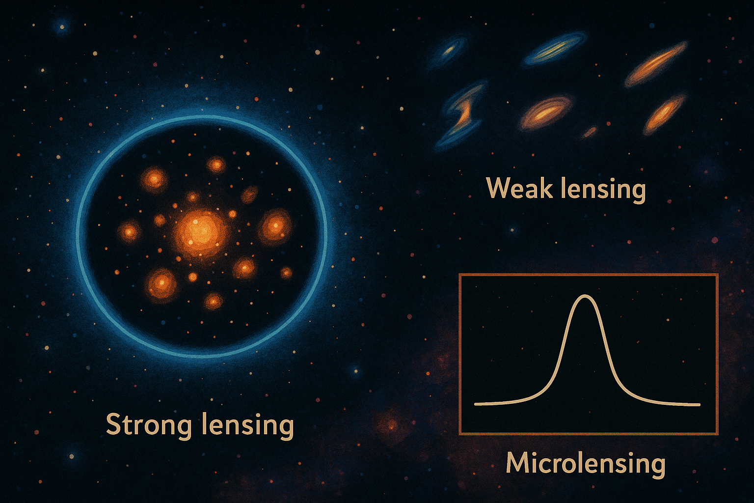 - 약한 렌즈는 전체 우주론과 암흑 물질 분포 연구에 집중되며, DES, Euclid, LSST 같은 대형 관측 프로그램에서 채택됩니다.